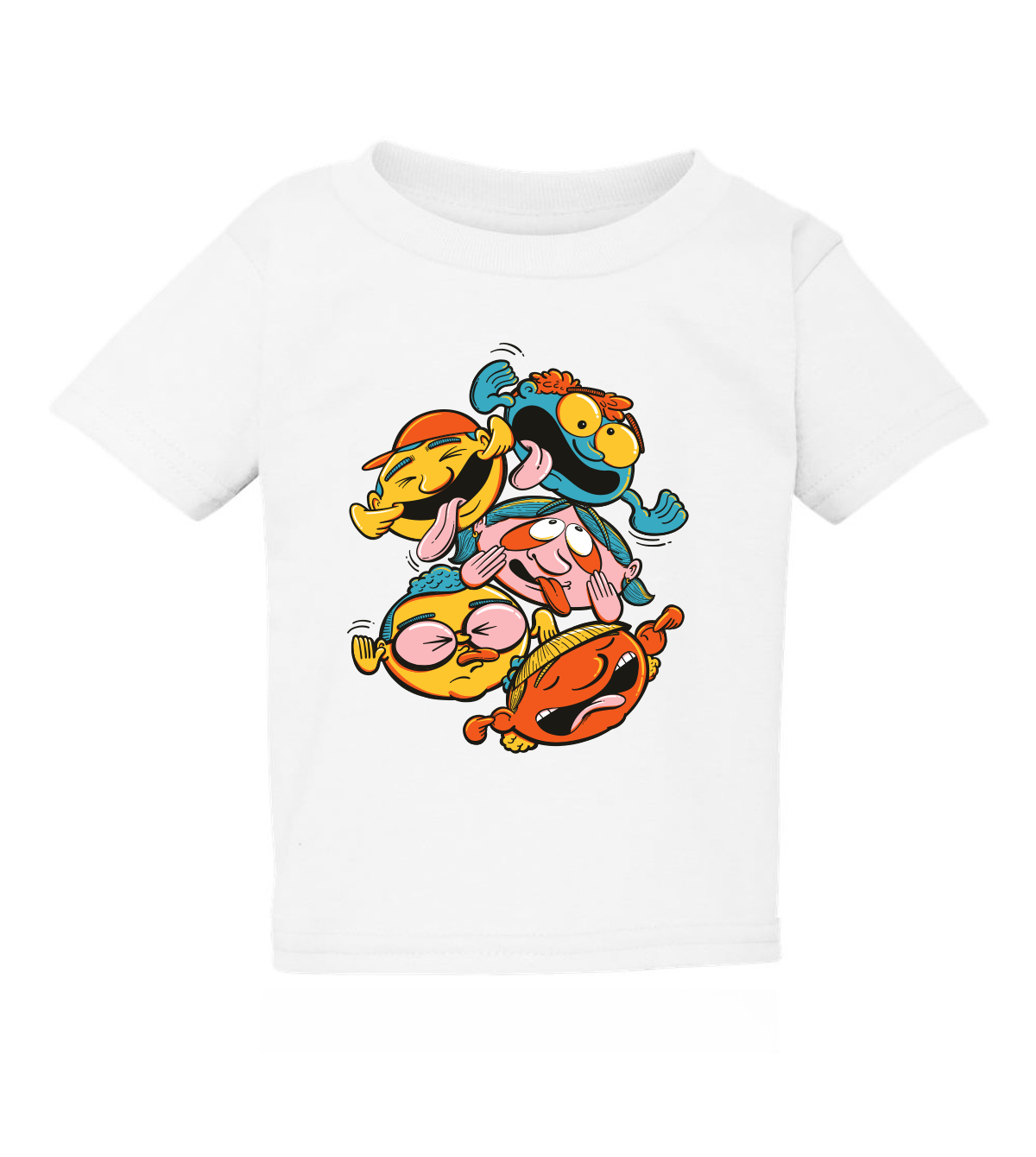 T-shirt color blanco con colores y diseño de “Colección Muecas” para niños y niñas.